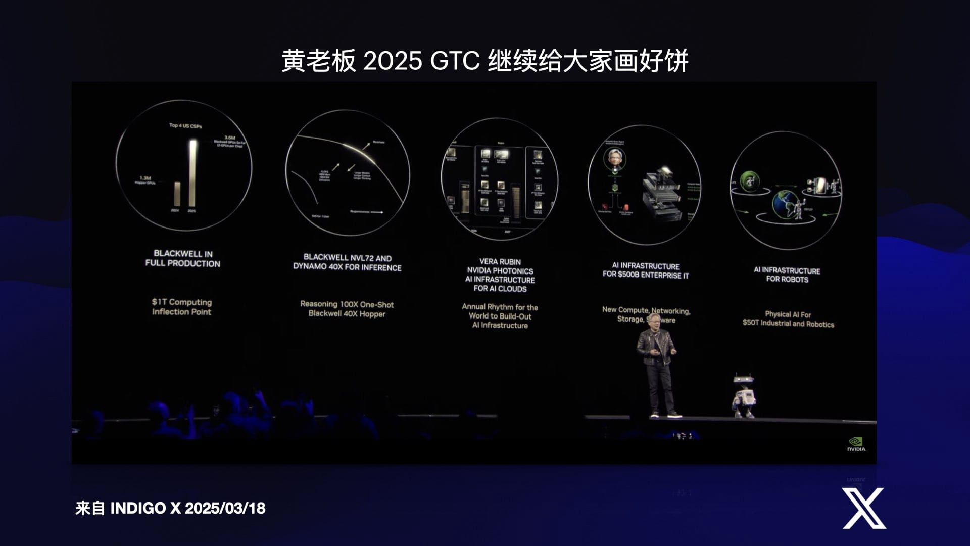 进入 2025 年,芯片行业主角再度轮番登场。3 月的 Nvidia GTC,黄仁勋像往年一样举着新硬件登场 —— 从桌面级“AI PC”到整柜 DGX 超算,覆盖个人、企业、云端三条赛道。展示了如何利用全新架构的 GPU、NVLink 和光纤互联,把训练与推理的速度推到新的极限。