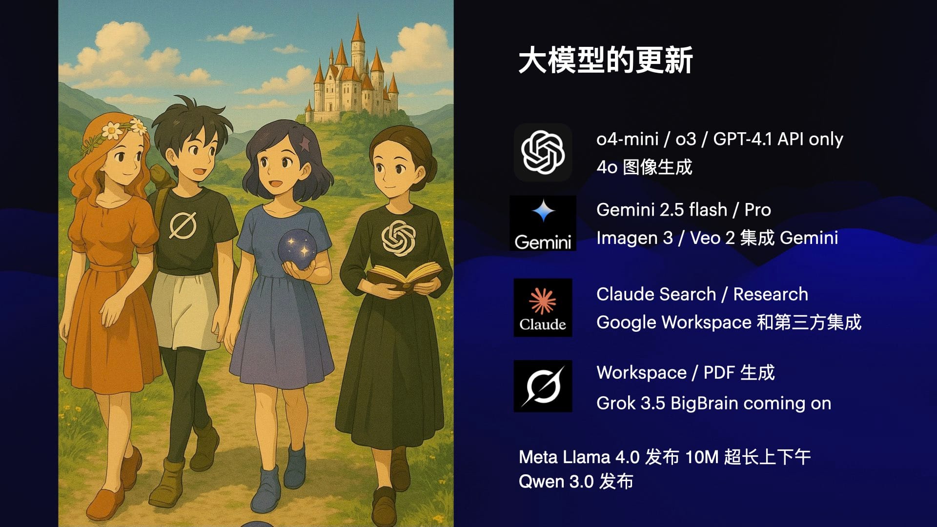 - OpenAI:从 GPT-4.1 到最新的 “O3”,不仅能阅读上下文更长,还能使用多个工具,甚至具备“自我代理”雏形。