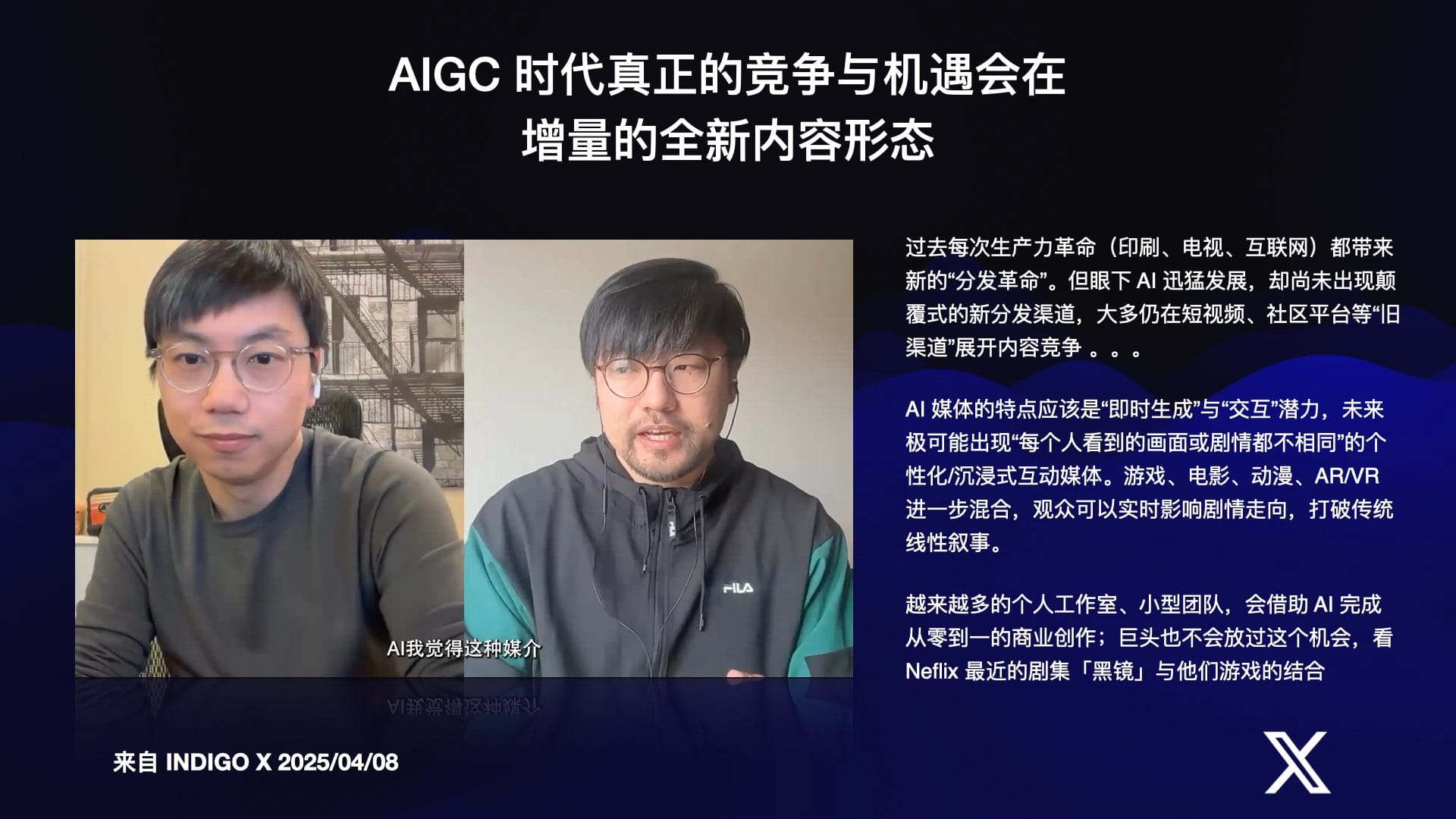 Indigo 在与 AI Talk 主持人汗青的对谈中提到: