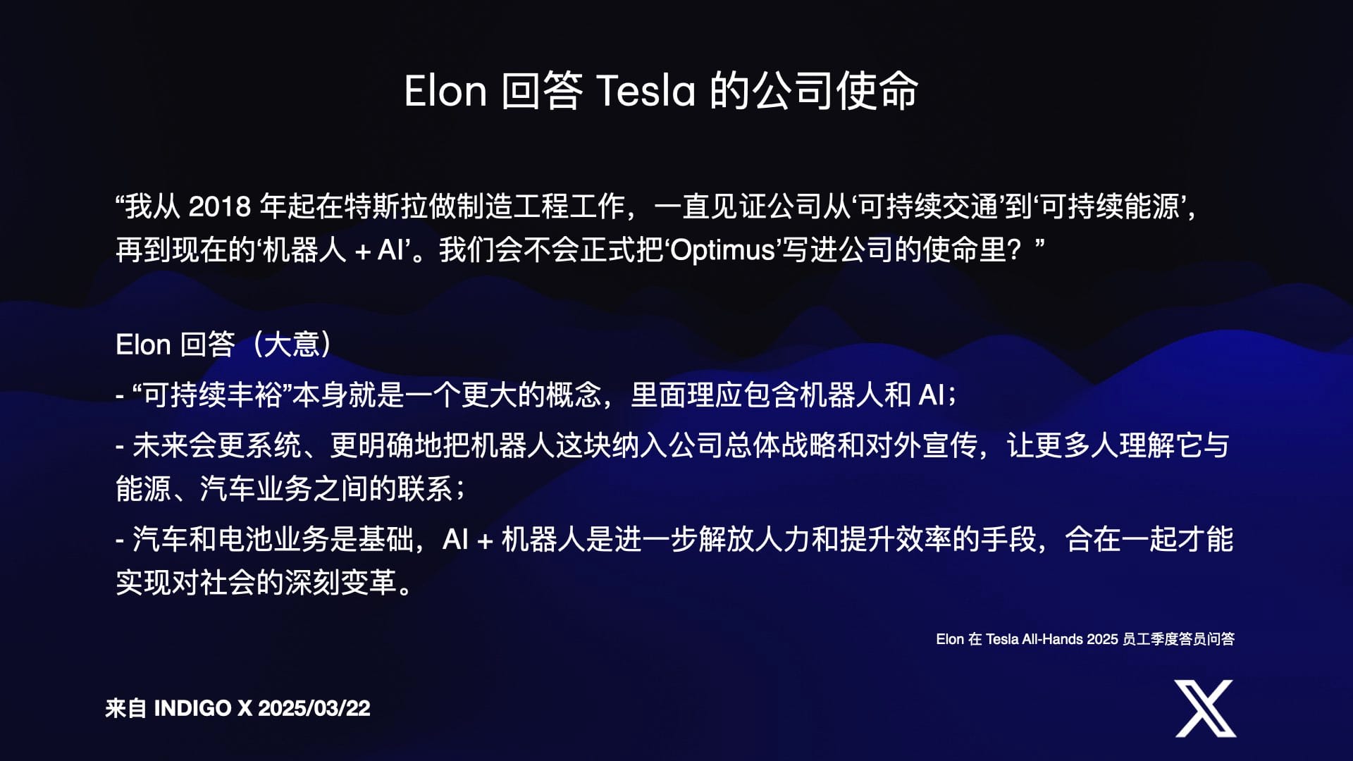 - Optimus 人形机器人:去年还走路不太稳,如今已经能做些简易动作,背后的“大脑”正是 FSD 的视觉与神经网络。随着算力和算法迭代,这款机器人可能将应用于工厂、家庭或极端环境中。