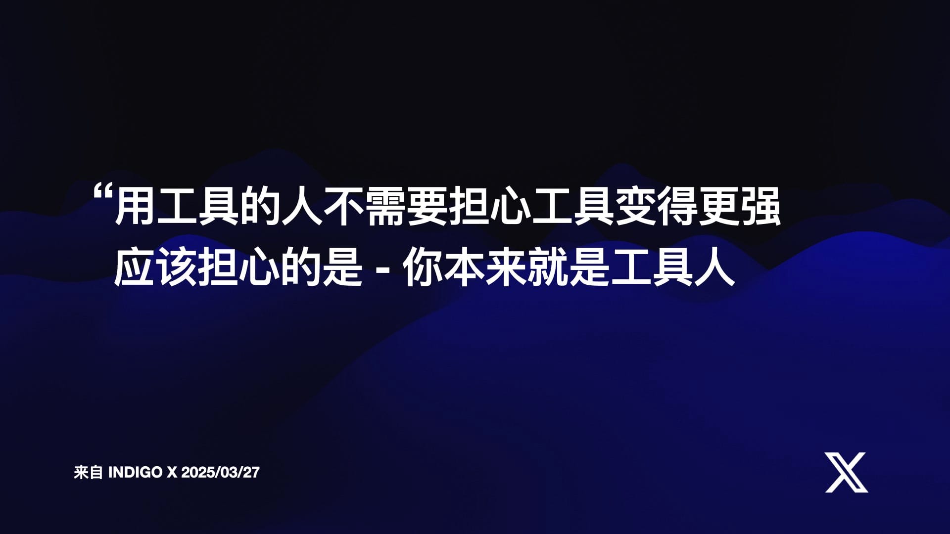 在直播结尾,Indigo 回到一个始终贯穿的话题:人如何在 AI 时代保持“不可替代”?