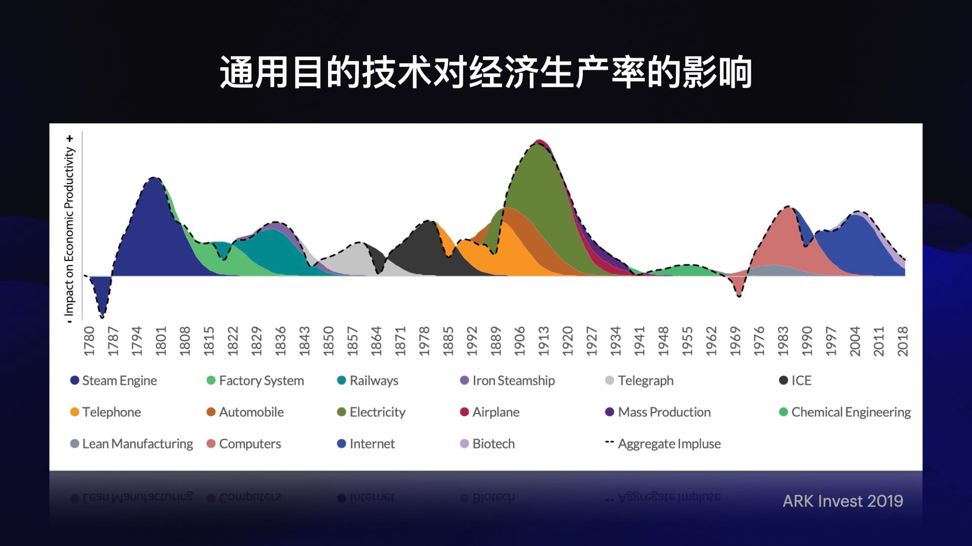 这些平台型技术一下子打开了新的增长局面。indigo 再次引用 ARK Invest 的预测图表: