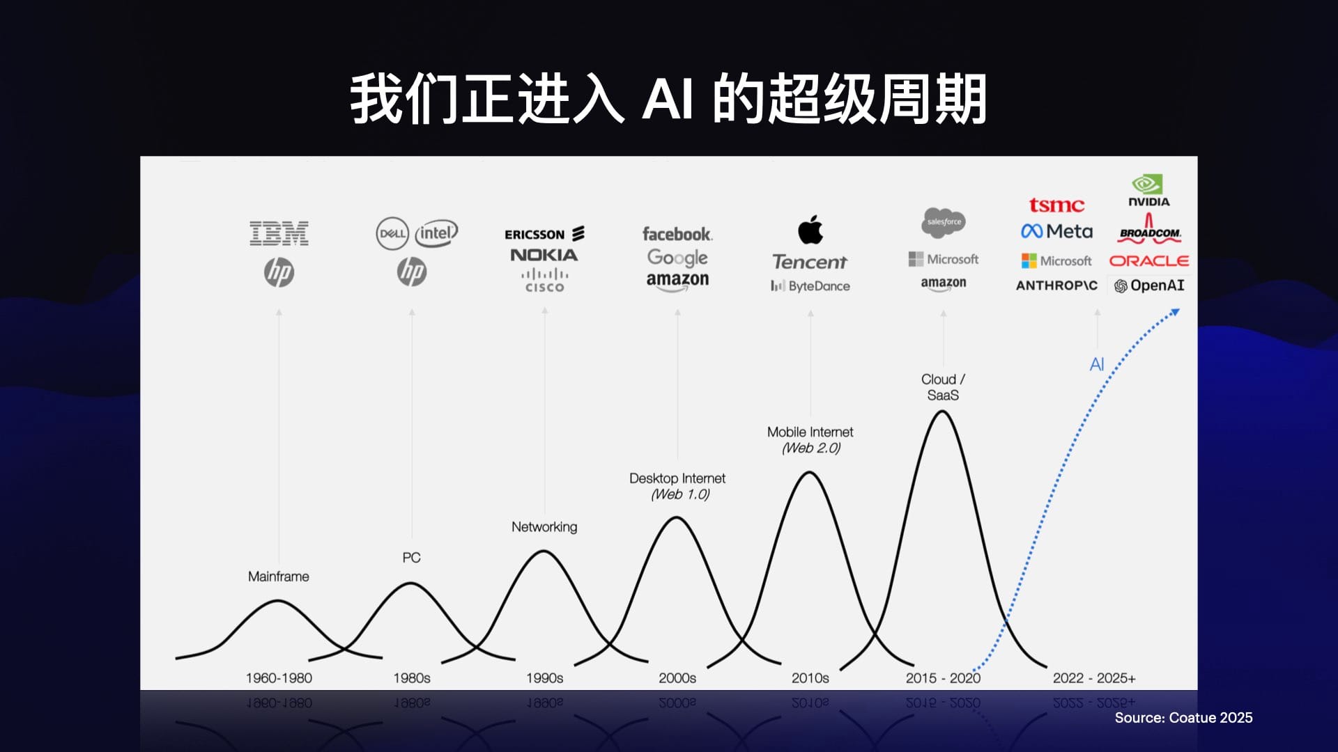 这种速度预示着我们正在进入一个新的“超级周期”(Super Cycle)。indigo展示了Coatue制作的周期图: