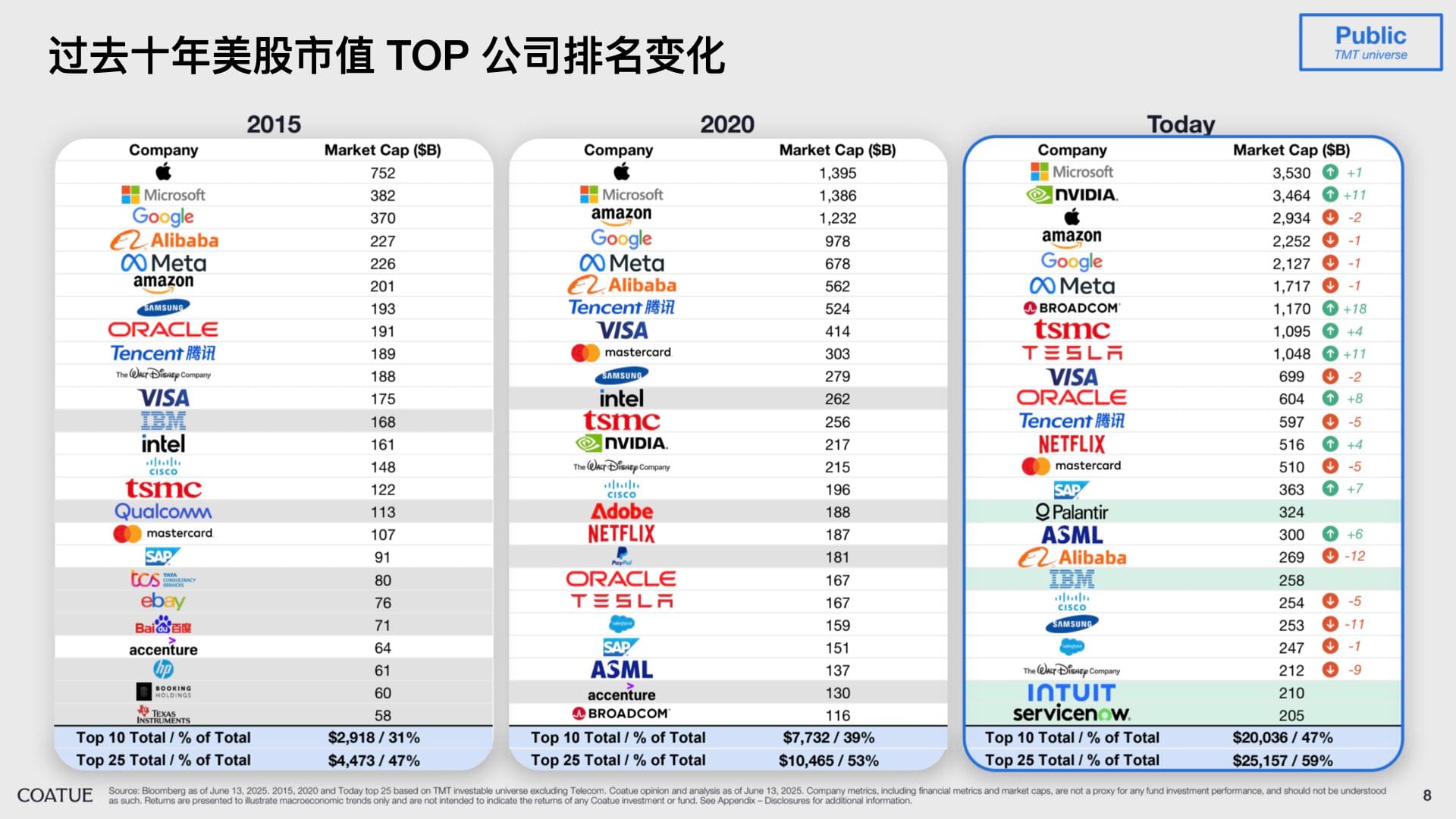- 工业革命领导者 → AI革命领导者(即当前市值领先的科技巨头)