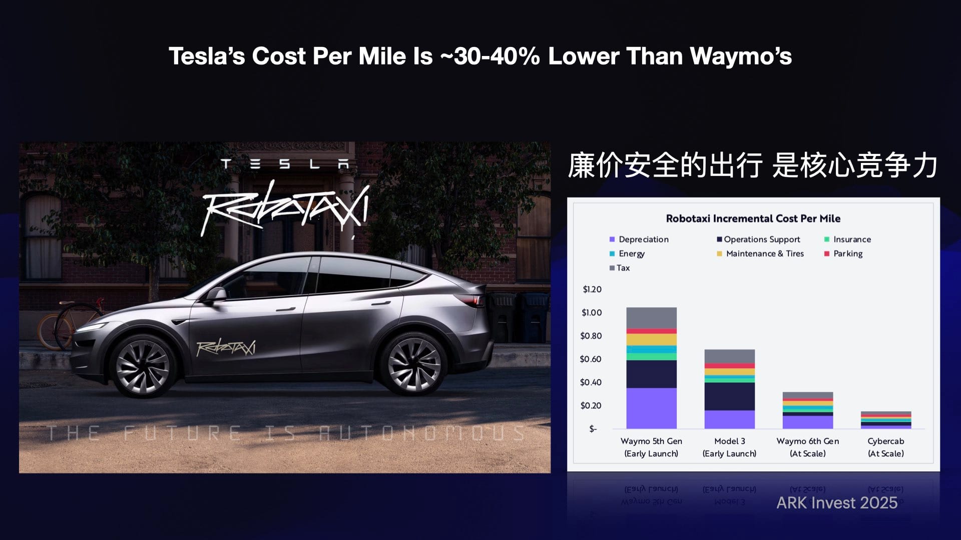 在这些被催化的领域中,indigo 认为自动驾驶是“马上到来的东西” [00:17:10],是物理世界 AI 最好的落地场景,比人形机器人更快。他进一步指出,仅仅销售 FSD 软件难以盈利,关键在于建立“自动驾驶网络”,即 Robotaxi 服务(如 Uber 模式)。他提到美国已有 Waymo 在运营,而特斯拉的 Robotaxi 潜力巨大,这也是 ARK 评估特斯拉股价时最重要的考量因素。