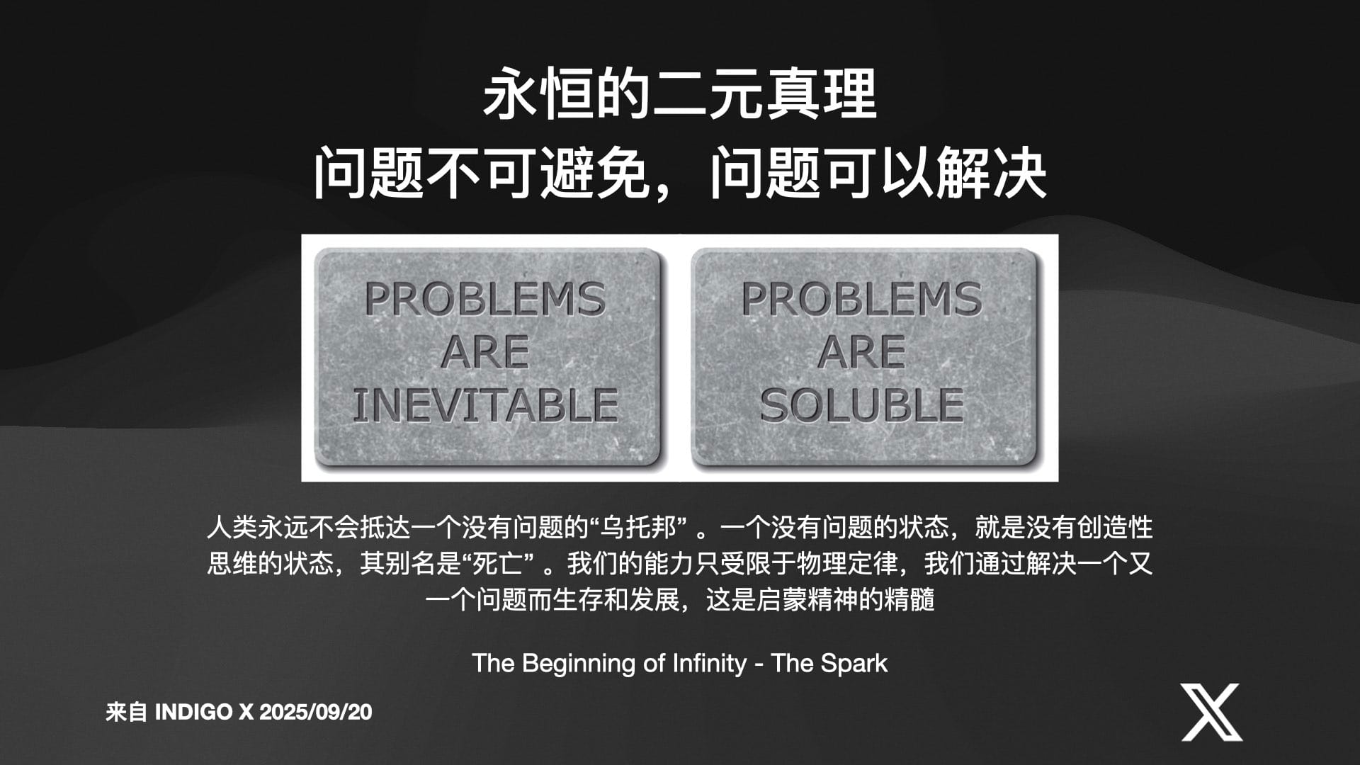 引用物理学家 David Deutsch 在《无穷的开始》中的思想,Indigo 传递了一种深刻的科技乐观主义: