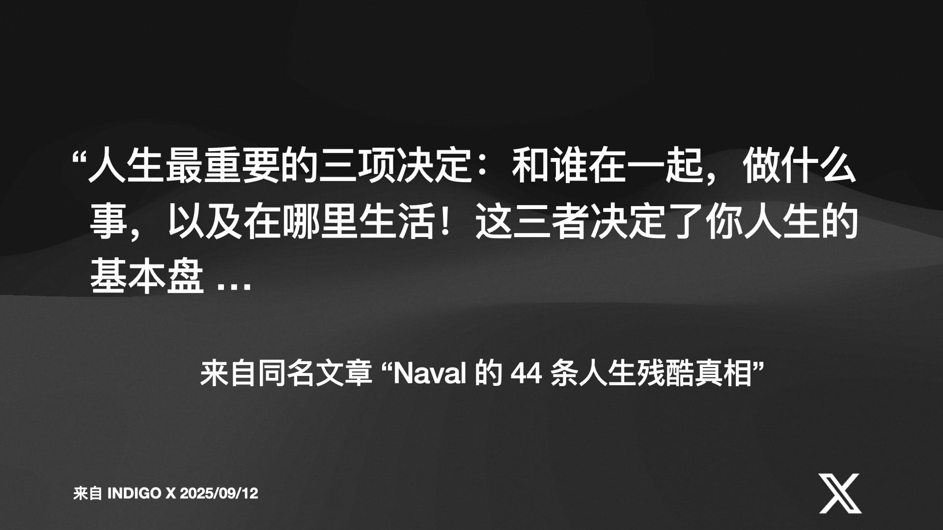 在分享的最后,Indigo 回到了更深层次的哲学和个人生存策略问题。
