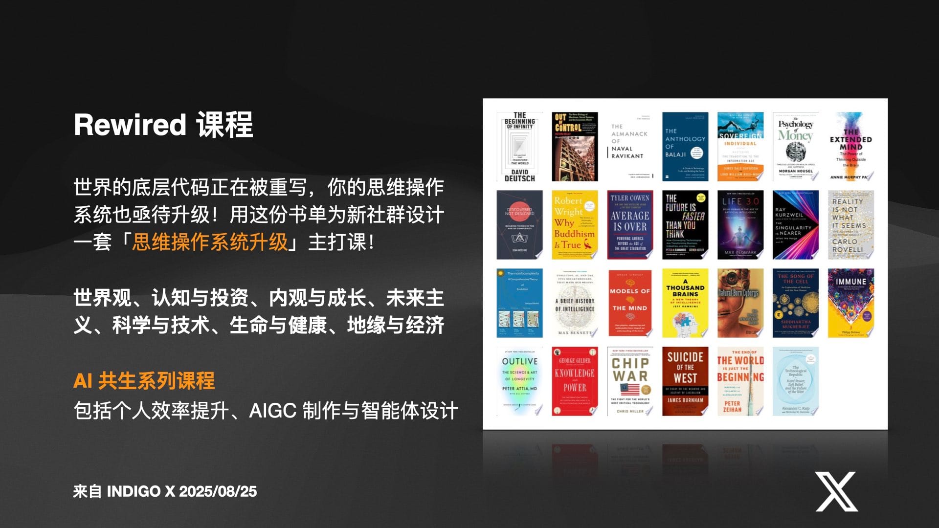 这个项目将包括一本探讨与 AI 共生的新书、一份由 AI 辅助筛选的深度周刊,以及一套涵盖世界观、认知成长和 AI 应用技能的完整课程体系。其最终目标是构建一个认知飞轮:通过 AI 增强学习、提升认知,再将认知快速在投资等领域变现,从而形成一个正向循环。