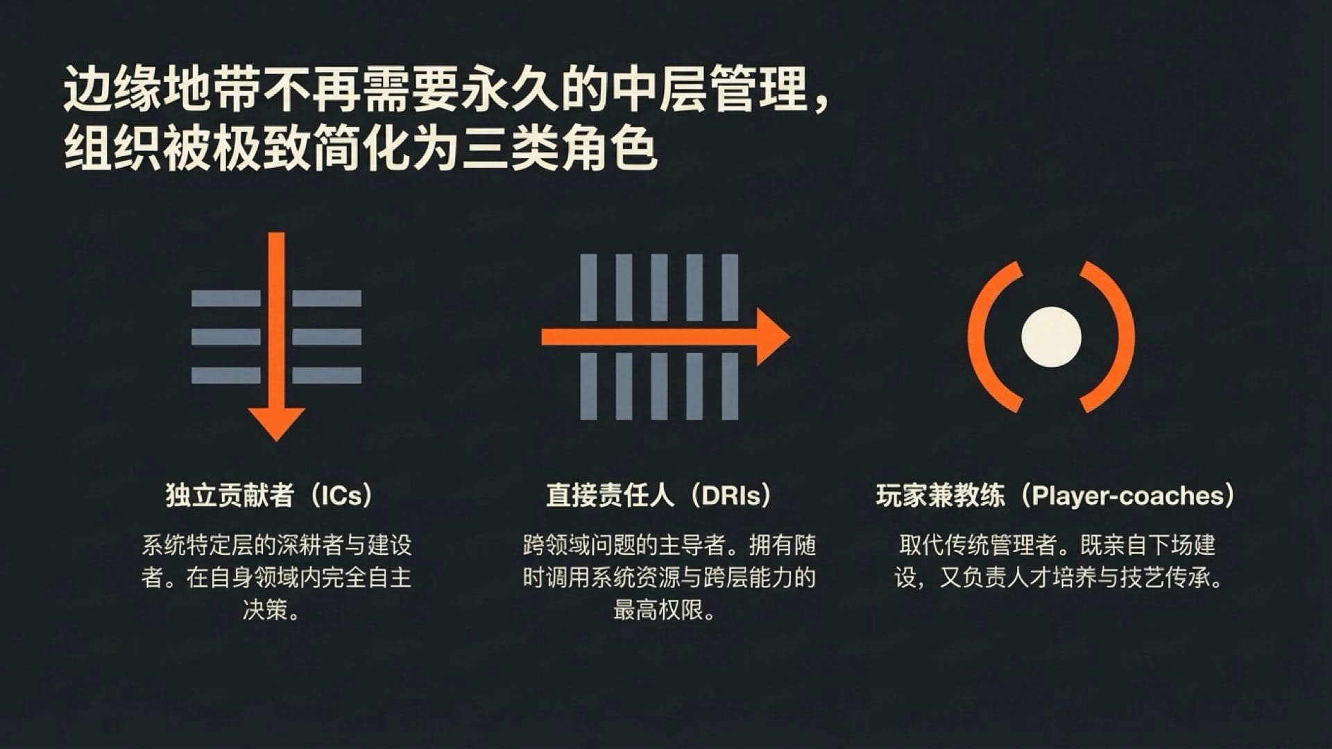 AI 重组之后,公司里只剩三种值得长期投入的角色——垂直专家、跨领域协调者(挖坑的)、Player Coach(教练)。