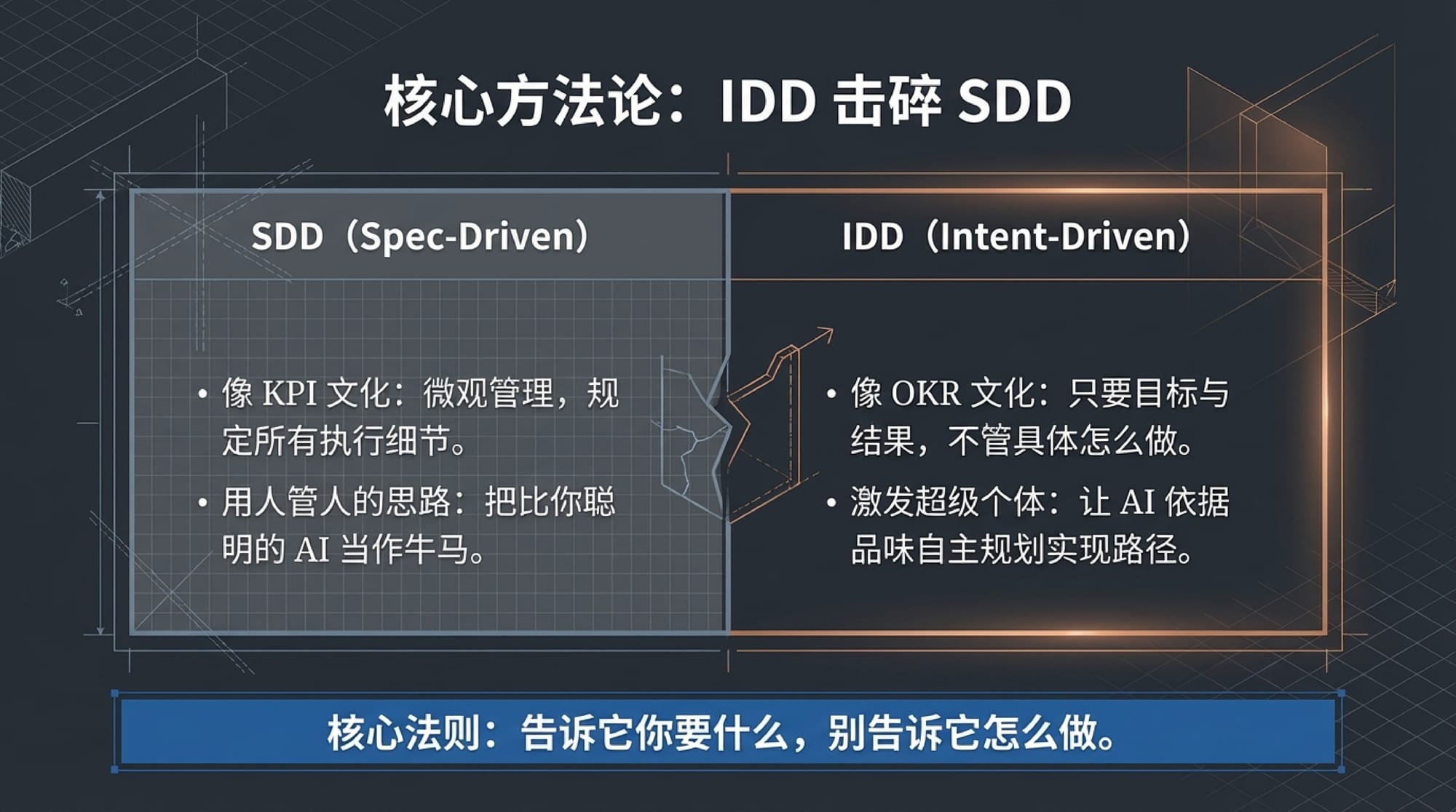 当前流行的 Spec-Driven Development(SDD)是一个误入歧途的方向。真正有效的方法是Intent-Driven Development——告诉AI你的目标,而不是微观管理它的执行过程。